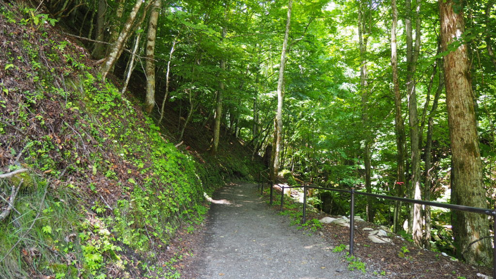 道中、登山口へ向かう途中の渓谷沿いは、釣りのための車のいくつかとすれ違いました。