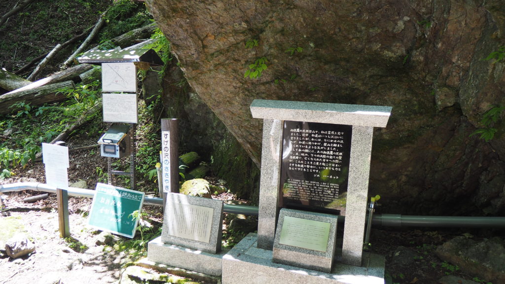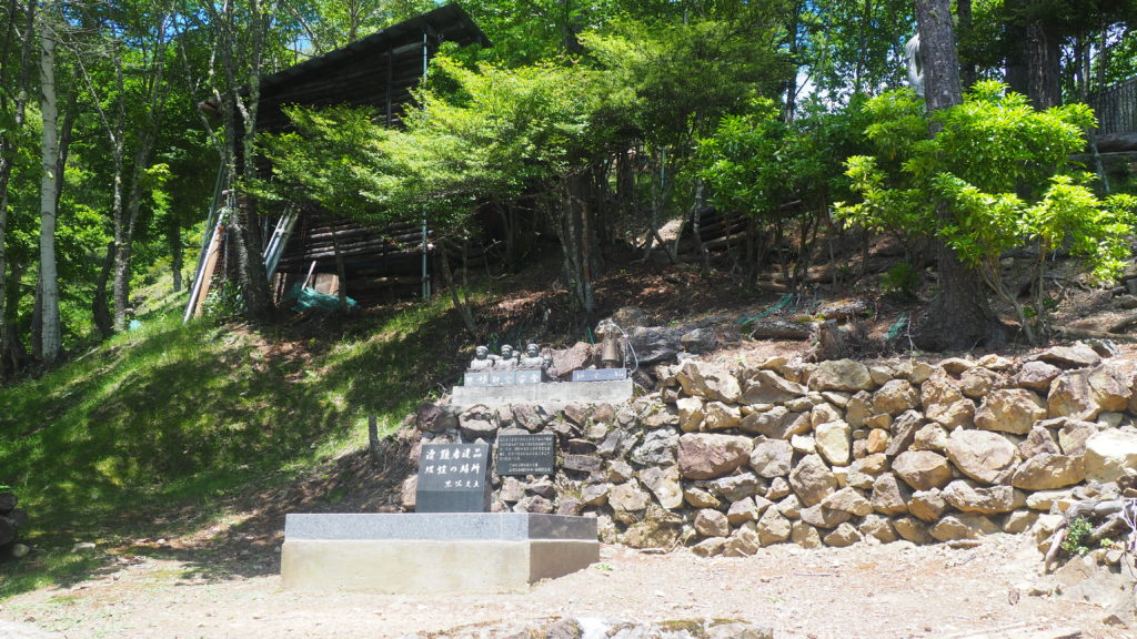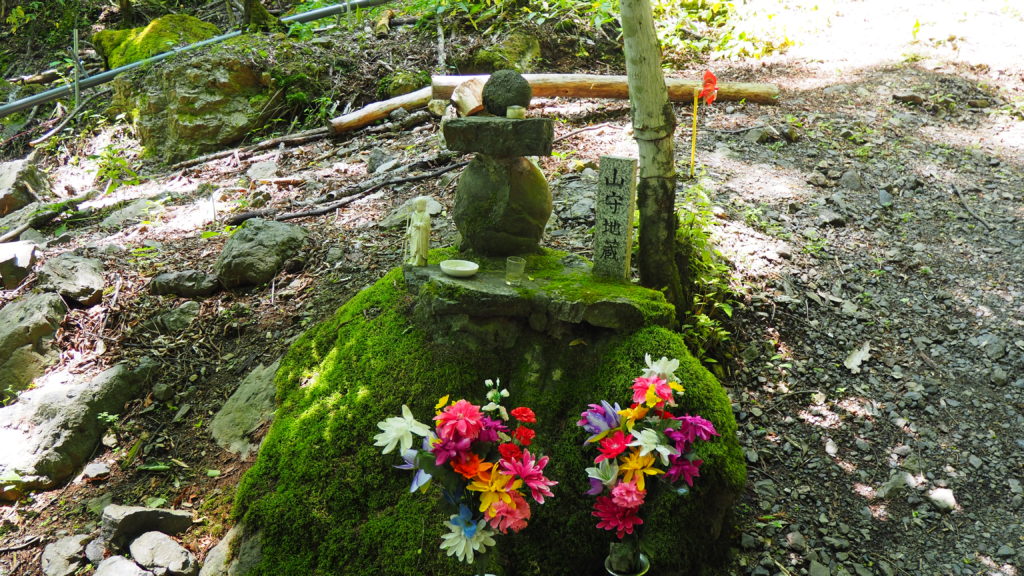 沢沿いの道をたどりながら山を登っていくと、やがて道端に、事故を伝える碑や像が一つ、また一つと姿を見せはじめます。